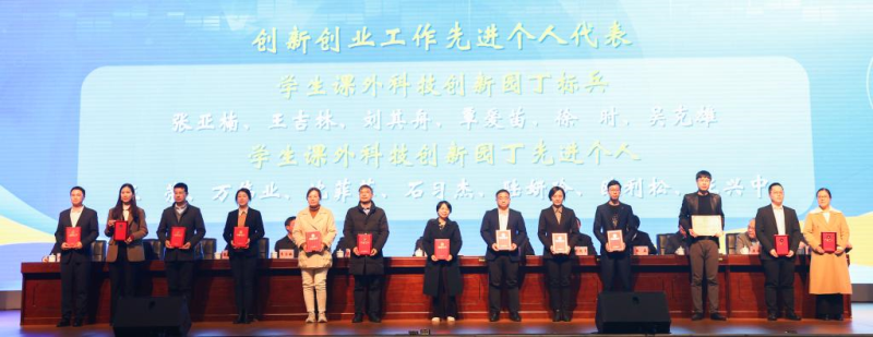 会议表彰了学校2023年毕业生就业工作先进集体、创新创业工作先进集体、征兵工作先进集体以及就业工作先进个人、创新创业工作先进个人。学校副校长周国清宣读了表彰决定,主席台就座领导为获奖先进集体和先进个人代表颁奖。