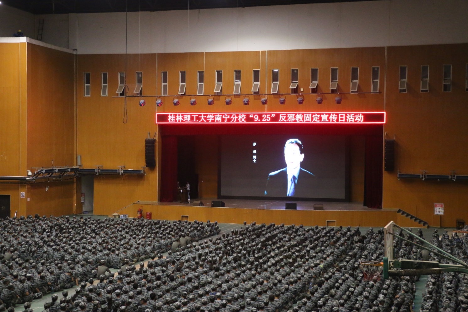 9月19日晚,分校在空港校区体育馆举办了新生国防教育之国际及我国周边战略环境暨反邪教安全教育讲座。讲座邀请了崇左市市委政法委副书记、防范办主任伍启明作专题报告。分校副校长梁锦叶,统战部、保卫工作部负责人及全体2017级新生军训团教官、师生参加讲座。
