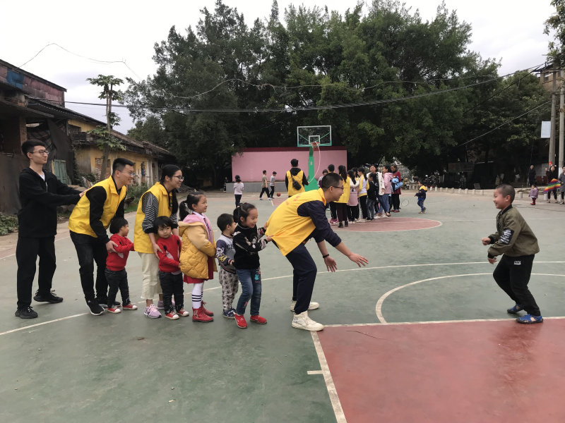 “树枝布偶娃娃”制作完成后,该支部志愿者们率领小朋友们来到操场,他们共同玩耍“老鹰捉小鸡”“跳绳”游戏。小朋友和志愿者们玩得不亦乐乎,操场上到处是他们开心地奔跑的身影,到处是他们欢快的笑声。