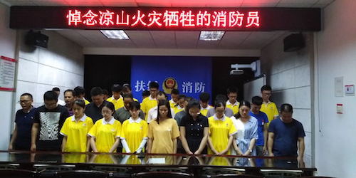 我系第三党支部和机关党总支第七党支部成员到达消防队后,首先来到会议室,消防大队指导员对两个支部的到来表示欢迎,并向与会人员介绍了消防大队的基本情况和近年来取得的成绩,随后,全体参会人员向消防大队官兵致敬,向在四川凉山火灾扑救中牺牲的消防员举行默哀仪式,沉痛悼念救火英雄。接着,消防官兵为支部党员、积极分子开展“一警八员”主题培训,讲述了消防安全方面的知识、消防工作的意义、灭火器材的种类及其性能和操作要领。最后,消防官兵带领我们参观消防车、营房等。活动结束时,我支部向消防官兵送慰问品,再次向消防官兵致敬。