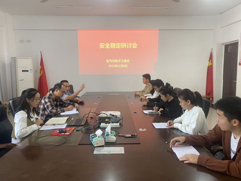 2022年11月8日,我系在4208会议室召开安全稳定研讨会,会议由系学工组长兼党总支副书记唐淑珍主持,系党总支书记甘锦琛、系主任周红锴以及全体辅导员参加会议。