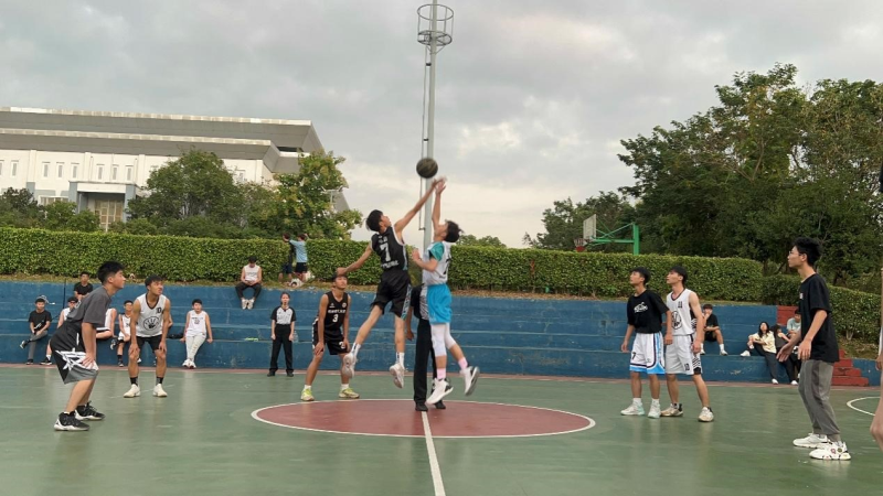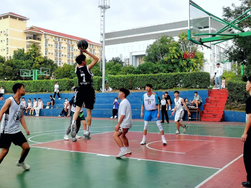 赛前,双方球员相互握手致敬。 随着一声哨响,比赛开始,双方球队本着“友谊第一,比赛第二”的原则,在球场上展开了激烈角逐。默契的团队配合,精彩的干拔跳投,流畅的攻防转换,绝妙的抢断快攻,将比赛推向一个又一个高潮,双方球员团结协作、敢打敢拼的精神表现,不时赢得了场下观众的阵阵喝彩。最终,学生会球队赢下了比赛的胜利。