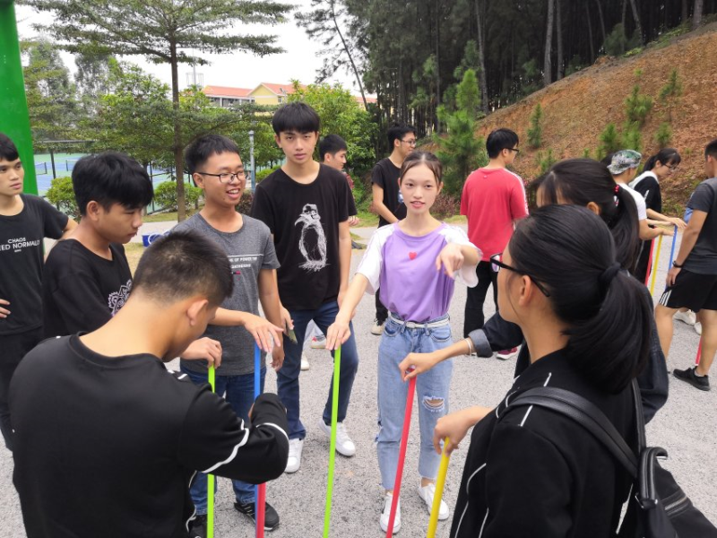 此次的心理素质拓展活动以游戏的形式来开展。首先每位成员们围成一个圈,依次来进行自我介绍,随后分成A、B、C、D四个小组进行游戏比赛。比赛项目有不倒森林和有轨电车。同学们在活动中相互协作配合,共同努力完成游戏任务。
