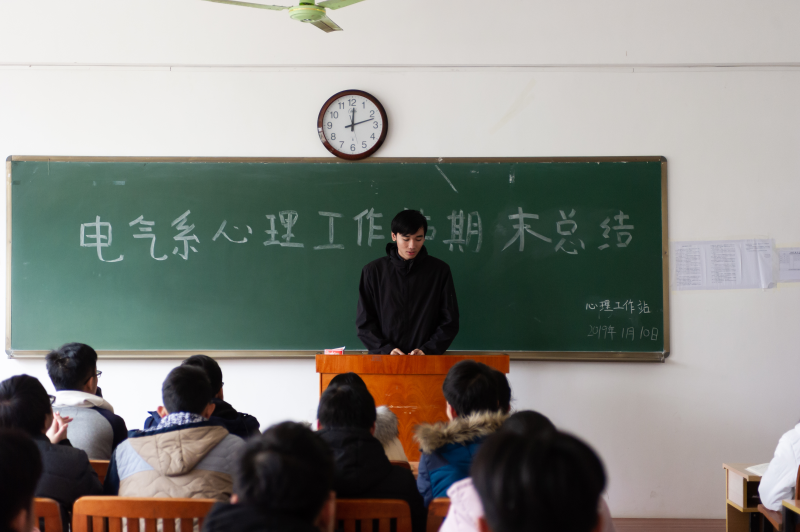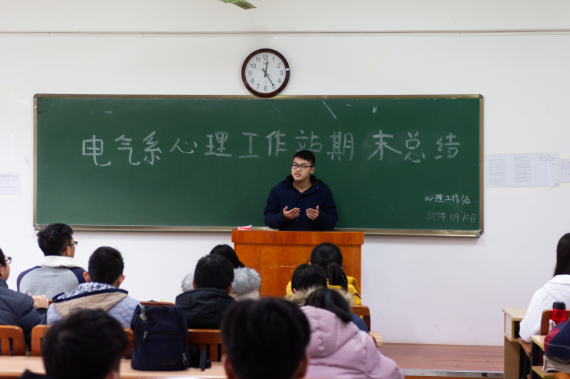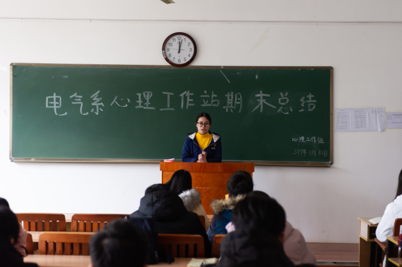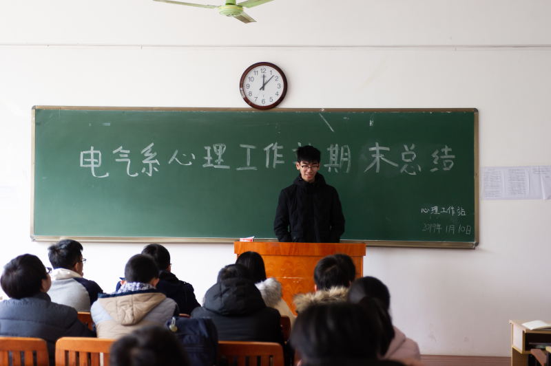 1月10日中午,我系心理工作站全体成员在玉成楼308教室行召开了期末总结会议。心理工作站全体成员以及指导老师李梅清参会。本次会议旨在对心理工作站2018-2019学年秋学期的工作进行总结。