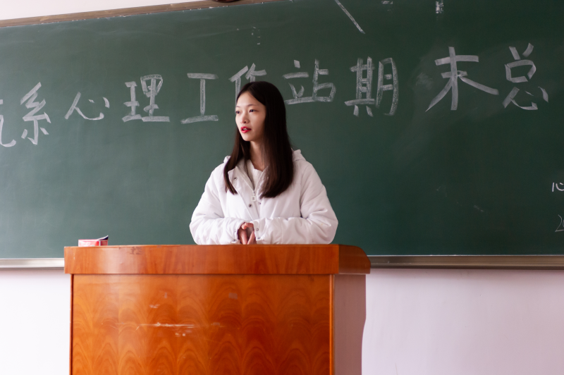 站长罗丽对工作站本学期的主要工作进行了简要概括,对工作站所举办的活动,工作站的成员们的表现和需要改进的地方进行了阐述,要求全体成员齐心协力,将工作站越办越好,同时希望心理工作站的小伙伴们能够在这个集体中收获技能和友情。秘书长胡清清、策划部部长温均翔、宣传部部长陈小霞、日常部部长李杰志、新闻部部长黄健也一一上台对本学期本部门的工作进行汇报,并且向同学们提出期望,愿同学们在下个学期能够有一份光就发一份热,在工作中进步,在进步中成长。18级各部门干事代表卓光权、龙文戈、蓝润生、王驭、黄宗锦分别就本学期在工作站中的工作情况及表现进行了工作总结,提及了自我的不足并承诺在下学期努力做到更好。最后,指导老师李梅请讲话,她对心理工作站一个学期以来认真工作的态度表示赞扬,并为工作站往后的工作指明了方向,希望全体心理工作站的成员可以充分发挥团体的优势,将工作站的广度进行延伸,多参加各类活动,在参与活动的的过程中丰富社团的活动,并使自己成长。