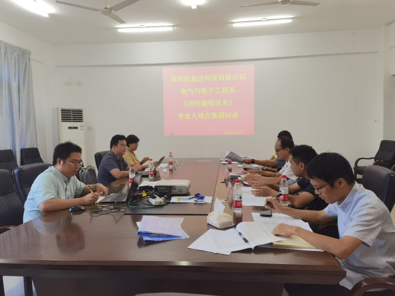 9月21日下午,通信教研室在玉成楼4208召开专业人才培养方案研讨会。会议邀请校企合作企业信盈达科技有限公司的运营总监黎小萍、技术总监莫文益共同参加研讨。系主任周红锴、系副主任李高宇出席会议。