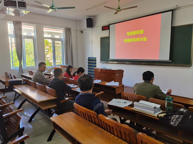 为了进一步提高教师师德师风与职业道德规范。2023年12月5日下午,电信教研室在玉成楼4310多媒体教室召开师德师风研讨会议,会上教研室主任带领大家学习了《习近平总书记关于师德师风的重要论述摘编》、《“四史”学习教育资料汇编》、《师德优秀典型先进事迹》、《新时代高校教师职业行为十项准则》等文件精神,会上要求老师要不断提升思想政治高度,平时在将教育教学注重典型示范引领,将师德第一标准贯彻到教学管理各环节。