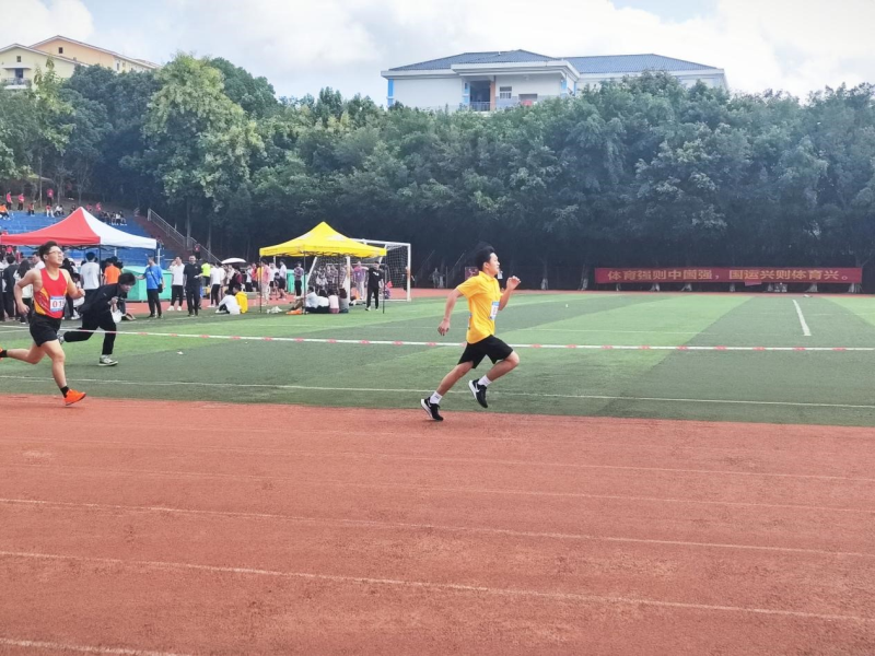比赛在热烈的气氛中拉开序幕。选手们在起跑线上准备就绪,随着发令枪声响起,他们如离弦之箭般冲出起跑线,全力以赴地向终点冲刺。他们在赛道上奋力拼搏,每一步都充满了决心和坚持。观众们为他们加油助威,现场气氛紧张而热烈。最后,我系谢志锋获得第四名。