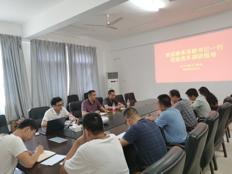 随后,唐承泽副书记一行到玉成楼208会议室进行调研座谈。座谈会上,系部领导班子简要汇报了师生返校情况、开学初教学管理工作和2023级新生接待筹备工作,重点汇报了系部2023年重点工作目标完成情况、存在不足和下一步重点工作推进措施。