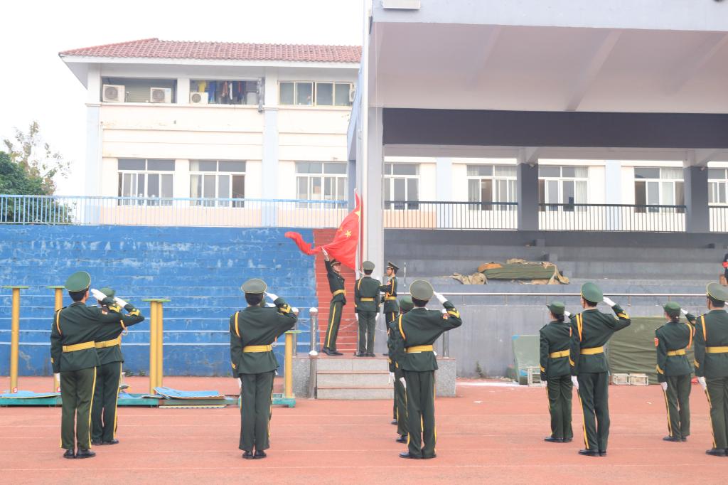 活动伊始,国旗护卫队迈着铿锵有力、整齐划一的步伐护送国旗走到升旗台前;伴随着激昂的《义勇军进行曲》响起,鲜艳的五星红旗缓缓升起,全体师生面向国旗行注目礼。