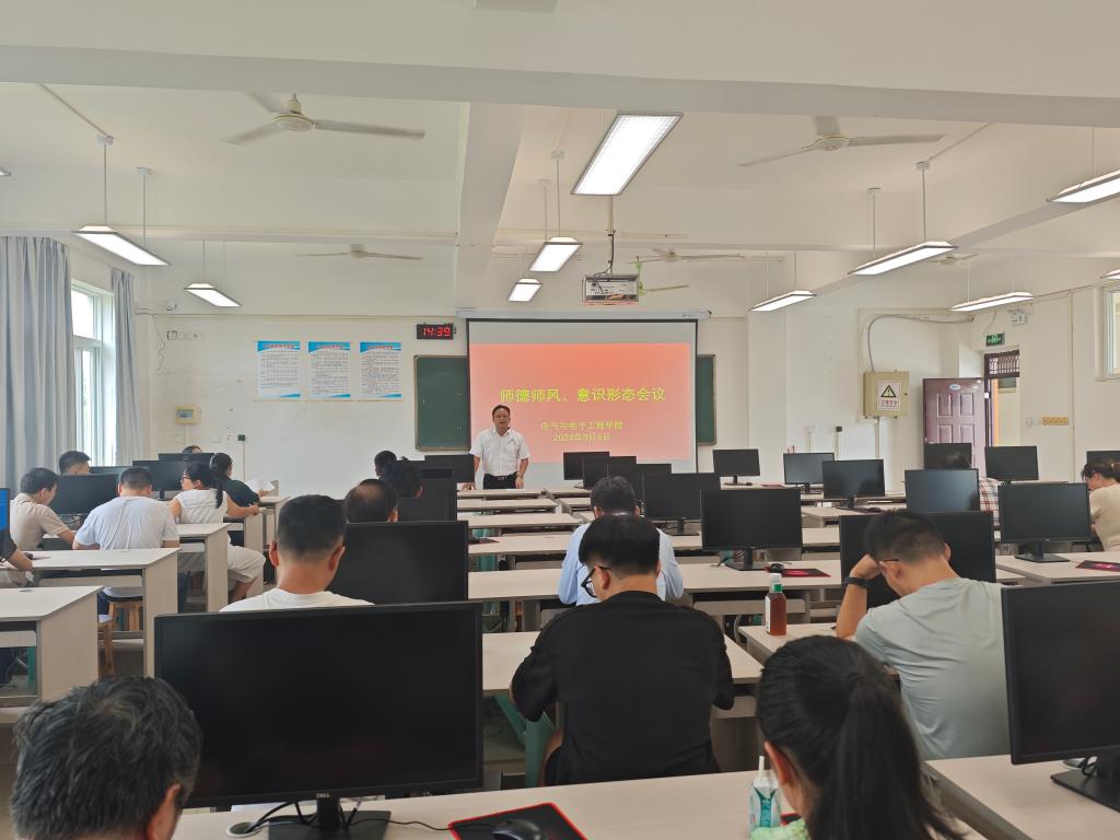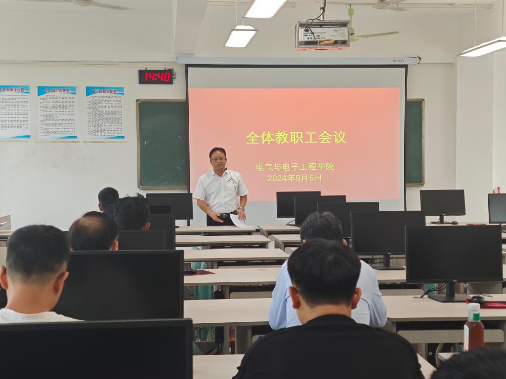 9月6日,我院在玉成楼4402教室召开全体教职工大会暨师德师德会议,会议由学院院长黄孝平主持,全体教职工出席此次会议。