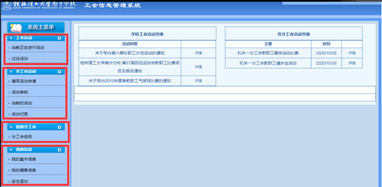 为深入推进工会网上工作的开展,改进和提高工会服务职工群众的能力和水平,形成网上网下深度融合、互联互动的工会工作新格局,进一步增强工会组织的吸引力和凝聚力,努力构建线上受理、线上线下办理的工会工作新格局,伟德国际victor·1946源自工会设计开发了网上信息管理系统,可实现分校工会活动线上报名,分工会活动线上申请、审批,工会会员信息管理等功能。详细操作使用说明如下: