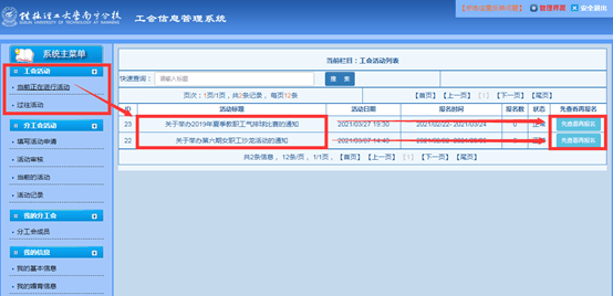 1.登录工会信息管理系统。集体活动由各分工会文体委员登录系统报名,个人活动则由会员本人登录系统自主进行报名。