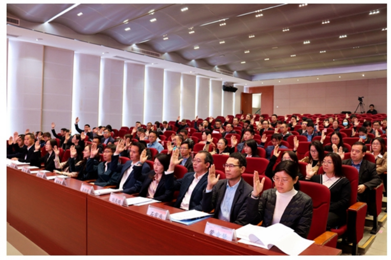 与会代表进行材料审议、举手表决