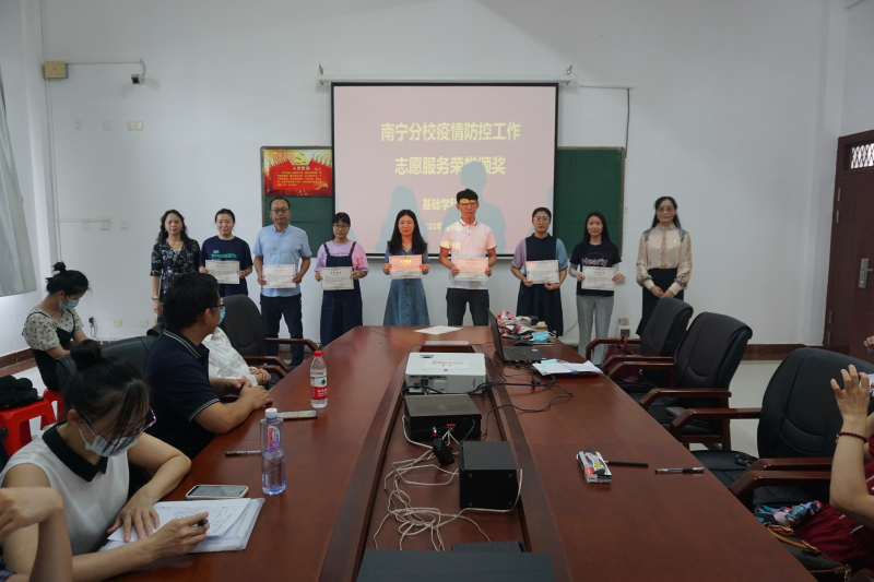 一、陈东莲副校长与黄昭彦主任为优秀党员志愿者颁发荣誉证书。基础学科部分工会直属党支部张敏、黄泽楷、俸芳娜、孙汝兵等同志在伟德国际victor·1946源自疫情防控工作中,踊跃投身志愿服务一线,奉献自我、服务他人,展现了“奉献、友爱、互助、进步”的志愿服务精神,凸显了在疫情防控中的爱心和责任担当。