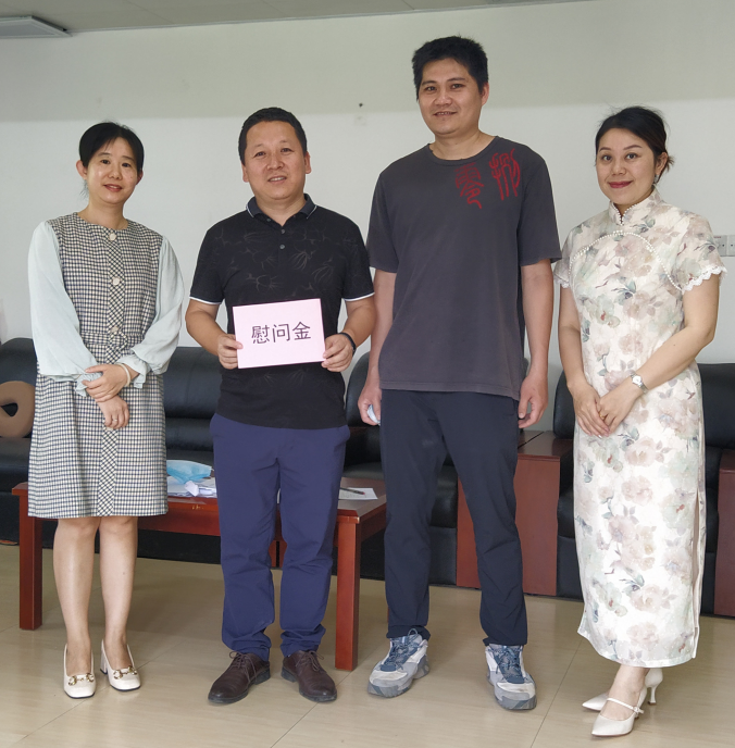 4月13日,机关三分工会代表杜建、钟洁、韦冬晓慰问工会生病康复出院的职工吕广文,为他带去全体工会同志的关心和祝福。