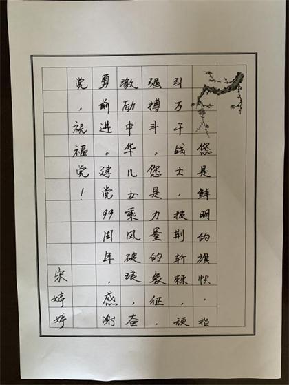 为了庆祝党的九十九岁华诞,弘扬中国共产党的优秀历史文化和传统革命精神,激励广大教职工的爱国爱党的理想信念,丰富文化生活,弘扬传统文化,以书法精品向建党99华诞献礼。7月1日——7月6日,机关一分工会开展了以“初心不改,99如一” 为主题的庆祝建党99周年硬笔书法比赛。