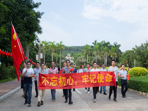 为庆祝中华人民共和国成立70周年,弘扬爱国精神,增强教师们的爱国热情,2019年9月26日下午16:00,电气与电子工程系分工会开展“喜迎中华人民共和国成立70周年”环校走活动,分会全体教职工积极参加了本次活动。本次环校走活动以玉成楼为起点,沿道路至践行楼,再至慧智园,最后从慧智园折返。