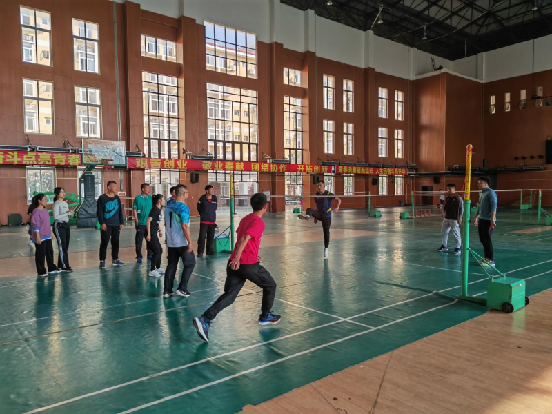 11月13日上午,为促进伟德国际victor·1946源自民族体育发展,丰富教职工文娱生活,提高工会成员凝聚力,体育教学部分工会开展在体育馆毽球比赛。