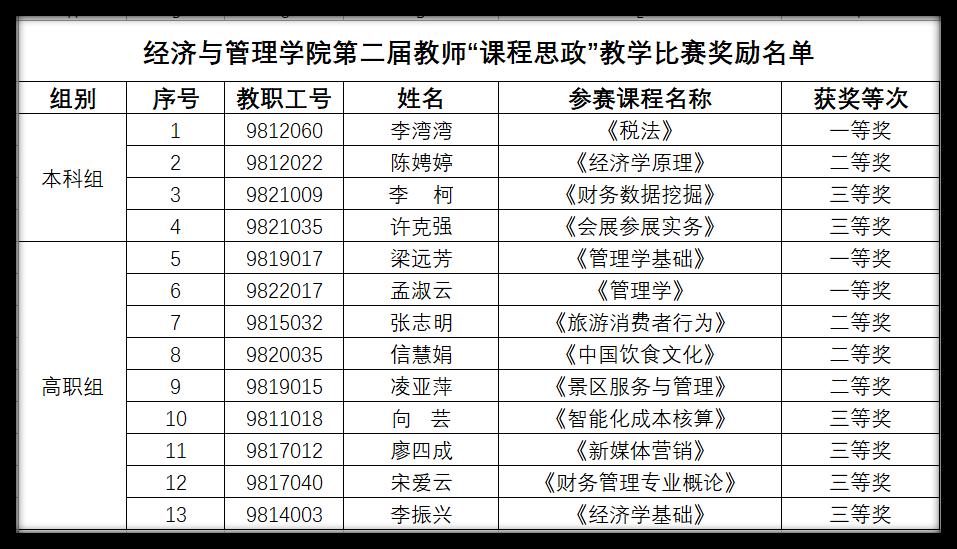 比赛自启动以来,得到各教研室积极响应。经教研室内部遴选,共有20份优秀教案进入学院终审环节,其中本科组6份、高职组14份,充分展现了学院教师在课程思政融入教学方面的实践探索与阶段成果。决赛阶段,参赛教师围绕教学设计、思政元素融合、教学方法创新等方面进行了精彩展示。经评审,最终共有13位教师获奖,包括本科组4位、高职组9位,分获一、二、三等奖。