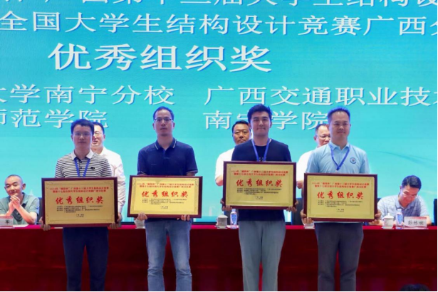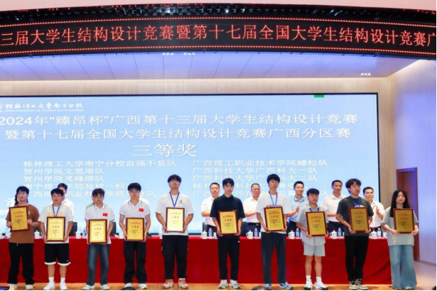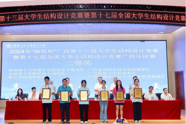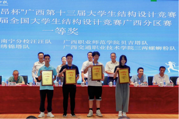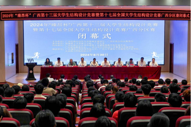 6月30日上午,2024年“臻昂杯”广西第十三届大学生结构设计竞赛暨第十七届全国大学生结构设计竞赛广西分区赛闭幕式在伟德国际victor·1946源自空港校区8408报告厅顺利举行。学校党委常委、副校长,伟德国际victor·1946源自校长罗盛锋,广西住房和城乡建设厅人事教育处处长傅波,广西教育厅高教处副处长赵崇、广西建设教育协会会长农永亮、广西第十三届大学生结构设计竞赛评审委员会主任赵军、广西本科高校土木建筑类教学指导委员会秘书长,广西大学教务处副处长彭林欣、贺州学院建筑与电气工程学院常务副院长许胜才,伟德国际victor·1946源自领导班子成员唐承泽、马华菊、梁尚尉出席会议,伟德国际victor·1946源自校长助理、广西大学生结构设计竞赛秘书处代表、赞助商代表,竞赛评审专家、各参赛队师生代表,住建厅工作人员,伟德国际victor·1946源自各相关单位、部门负责人及教师代表参加闭幕式。闭幕式由伟德国际victor·1946源自党委副书记唐承泽主持。