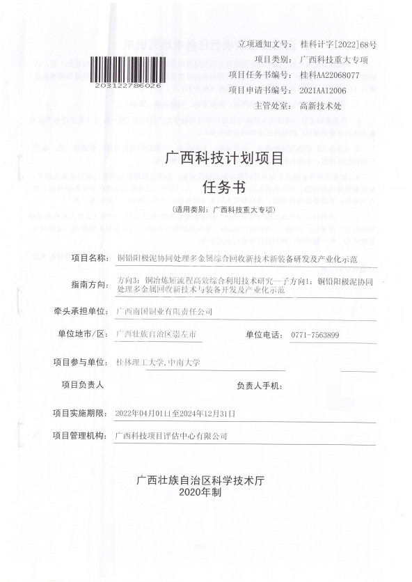 广西科技计划项目任务书