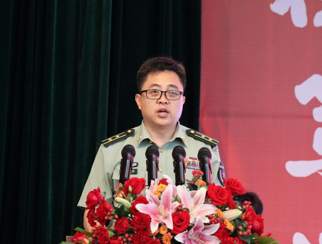 扶绥县人民武装部副部长马璐璐在典礼上讲话