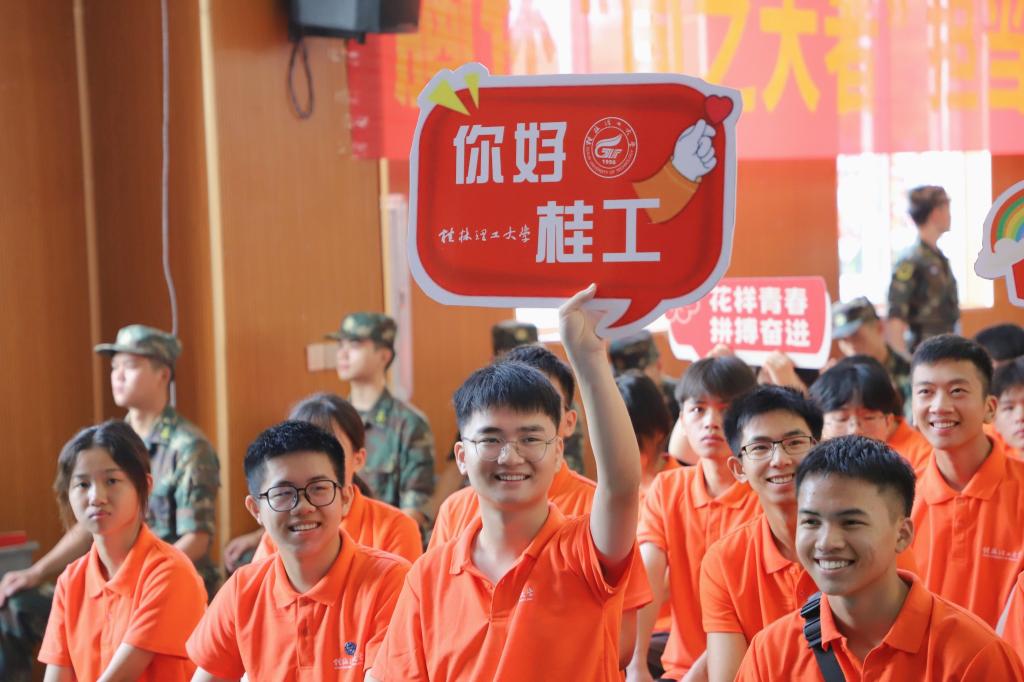 全体新生庄严而神圣地佩戴桂工校徽