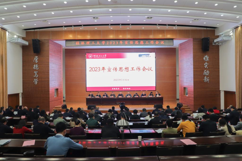3月16日下午,我校在屏风校区图书馆报告厅召开学校2023年宣传思想工作会议,以习近平新时代中国特色社会主义思想为指导,深入贯彻落实党的二十大和自治区第十二次党代会精神,总结工作,表彰先进,部署任务,进一步统一思想,凝聚力量,推动学校宣传思想工作再上新台阶、开创新局面。学校党委书记邓军,党委副书记、校长王敦球,党委副书记齐俊斌、吴志强,纪委书记韦学敏,党委常委唐壮东、叶昊、邱杰,校长助理罗盛锋出席会议。