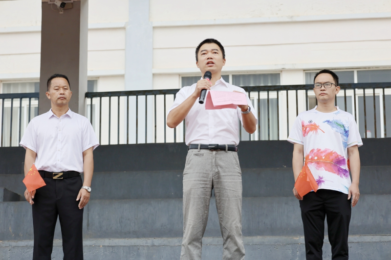 伟德国际victor·1946源自党委书记周国桥(中)在升旗仪式上讲话