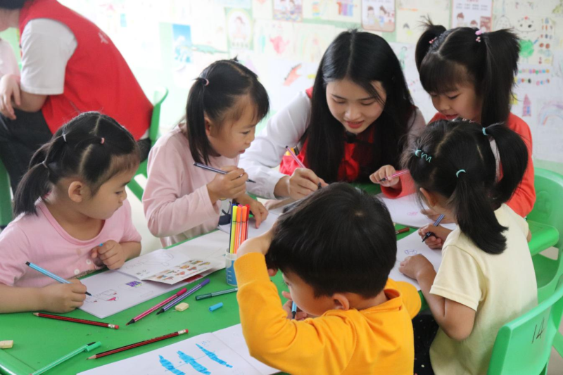 当天,该志愿服务队为教学点学生们开设了音乐课堂及绘画课堂,并组织他们开展了丰富有趣的户外素质拓展活动,孩子们积极参与,欢声笑语不断。