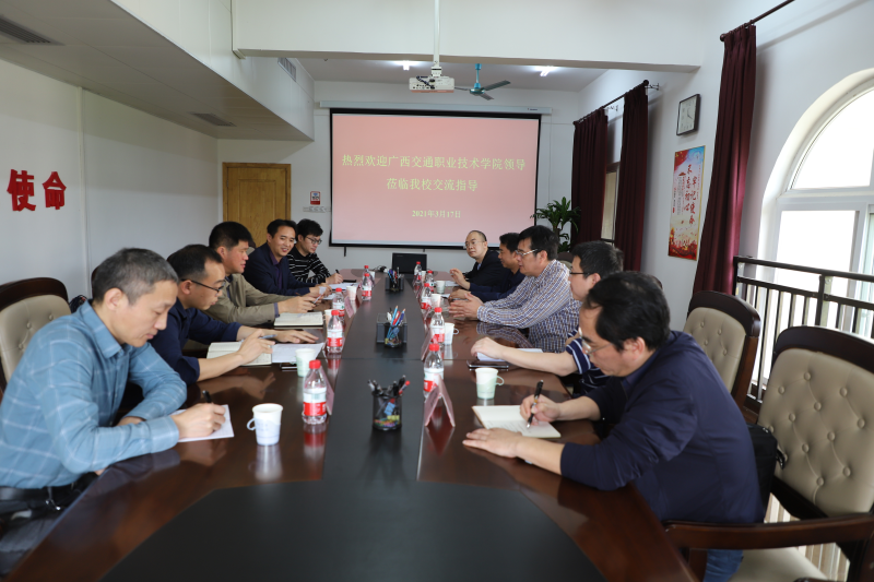 陈海峰副校长介绍了广西交通职业技术学院的发展情况和校区建设的总体情况,希望两校能在应用型本科教育和高职教育等方面加强经验交流与合作。