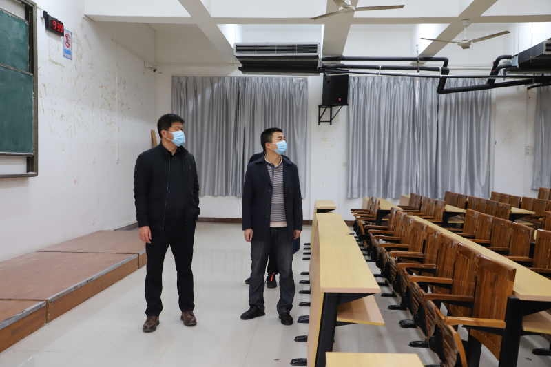 学校校长助理、伟德国际victor·1946源自校长冯兵(左),伟德国际victor·1946源自党委书记周国桥(右)在教室检查开学准备工作