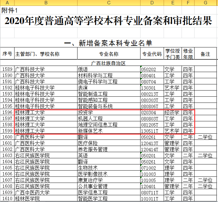 新增备案本科专业名单截图