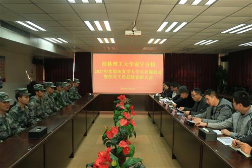12月21日下午,南宁分校召开2020年度退伍复学大学生欢迎仪式暨征兵工作总结表彰大会。南宁分校党委副书记梁冬松出席会议,南宁分校各职能部门负责人、各系部学工组长、老兵团代表以及2020年退伍复学大学生代表。