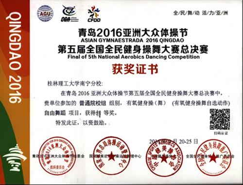 2016年参加全国健身舞大赛特等奖证书