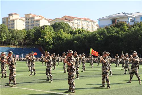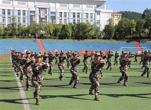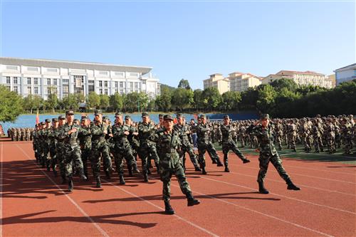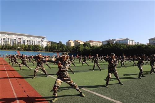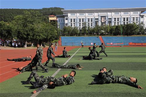 伴随着分列式进行曲,经过十余天紧张训练的参训新生排成方阵,身着戎装、精神饱满,以标准的军姿、高昂的士气、铿锵的步伐,意气风发地依次走过主席台。随后,男子军体拳、男子擒敌拳、女子捕俘刀方队和教官们带来了气势磅礴的军事项目表演。