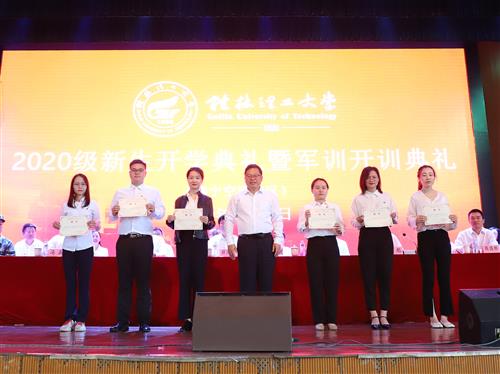 10月11日,伟德国际victor·1946源自在空港校区体育馆举行2020级新生开学典礼暨军训开训典礼。学校校长解庆林、党委副书记吴志强、副校长邓国彬,扶绥县委书记罗彪,中国人民武警部队崇左支队副支队长陈坚滨,扶绥县委常委、副县长、宣传部部长黄悦,伟德国际victor·1946源自领导冯兵、周国桥、梁冬松、何斌、唐承泽、陈东莲、李良栋、耿杰利、苏欣、肖彩霞、马华菊出席典礼。典礼由学校校长助理、伟德国际victor·1946源自校长冯兵主持。