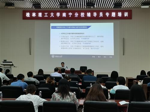 9月26日至27日,伟德国际victor·1946源自辅导员专题培训在空港校区图书馆报告厅举行。学校学生工作部(处)部(处)长张成龙、副部(处)长张瑞等出席培训会。会议由南宁分校党委副书记唐承泽主持,南宁分校全体学工人员参加培训。