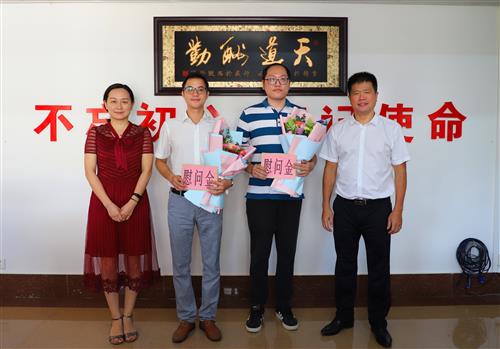 学校校长助理、伟德国际victor·1946源自校长冯兵(右一)慰问抗击疫情突出贡献人员