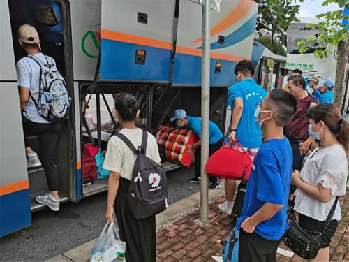 新生有序排队上车