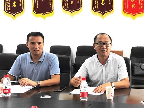学校招生就业处副处长迟国东(右)汇报学校就业工作