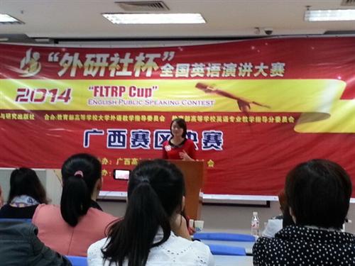 此次大赛由外语教学与研究出版社主办,是国内水平最高、规模最大、影响力最广泛的英语演讲比赛,来自广西30多所高校的90余名本专科大学生参加了此次演讲比赛。此次参赛有助于激发我院学生学习英语的兴趣,也对进一步开展英语教学改革工作起到了一定的推动作用。