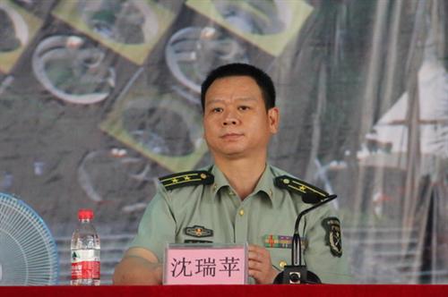 崇左军分区副参谋长沈瑞苹中校作动员讲话