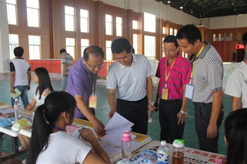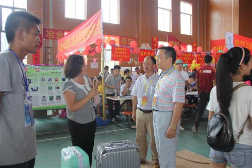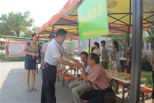学院领导向候车的家长送上爱心解暑绿豆汤