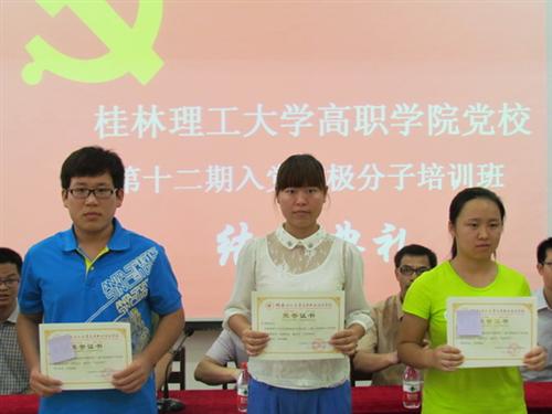 梁冬松常务副书记在结业典礼上向学员们表示祝贺,他肯定了全体学员饱满的学习热情、端正的学习态度和良好的学习效果,结合党的十八大、十八届三中全会和我院当前建设高水平职业学院的背景,勉励学员们要坚定理想信念,牢记使命,以更饱满的热情投入学习和工作,在实践中学习提高,以实际行动和出色成绩争取早日加入党组织。