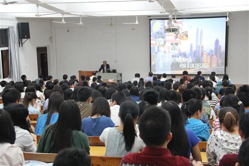 当晚,在空港校区启智楼108教室举办的国际教育宣讲会上,陈锦松先生、武明俊先生、赵明教授先后介绍了马来西亚伯乐大学等国外高校的办学及留学申报等情况,并与在场师生进行了现场交流。