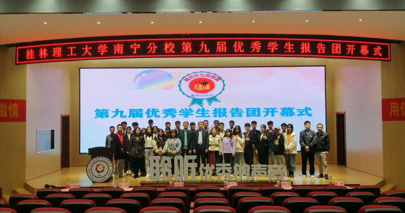 优秀学生报告团旨在学生中形成“向往优秀,比肩优秀,成为优秀,超越优秀”的良好氛围,发挥优秀典型榜样对同学们的引导示范作用,最终达到加强学风建设、弘扬桂工精神、传递青春正能量的目的。