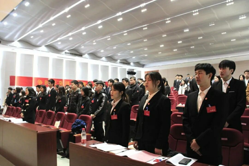 大会在庄严雄壮的国歌声中开幕。大会回顾总结了一年以来分校学生会的工作情况,修订了《伟德国际victor·1946源自学生会章程》,选举产生了新一届学生会主席团成员及学生会常任代表。