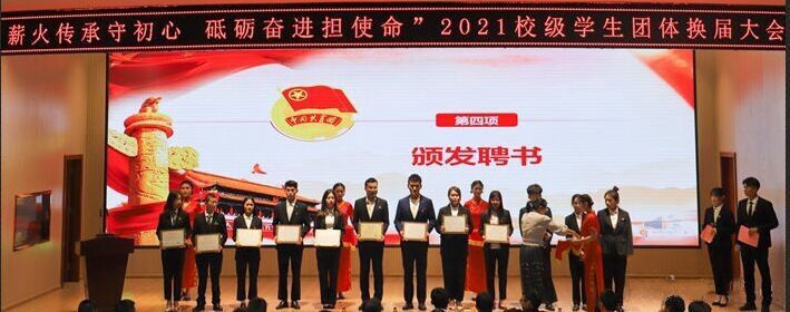 2021年10月25日下午,分校团委在启智楼408报告厅召开了2021级学生团体换届大会。出席本次会议的有分校党委副书记唐承泽、分校团委书记、分校学工部副主任及各系团总支书记、各团体指导老师。